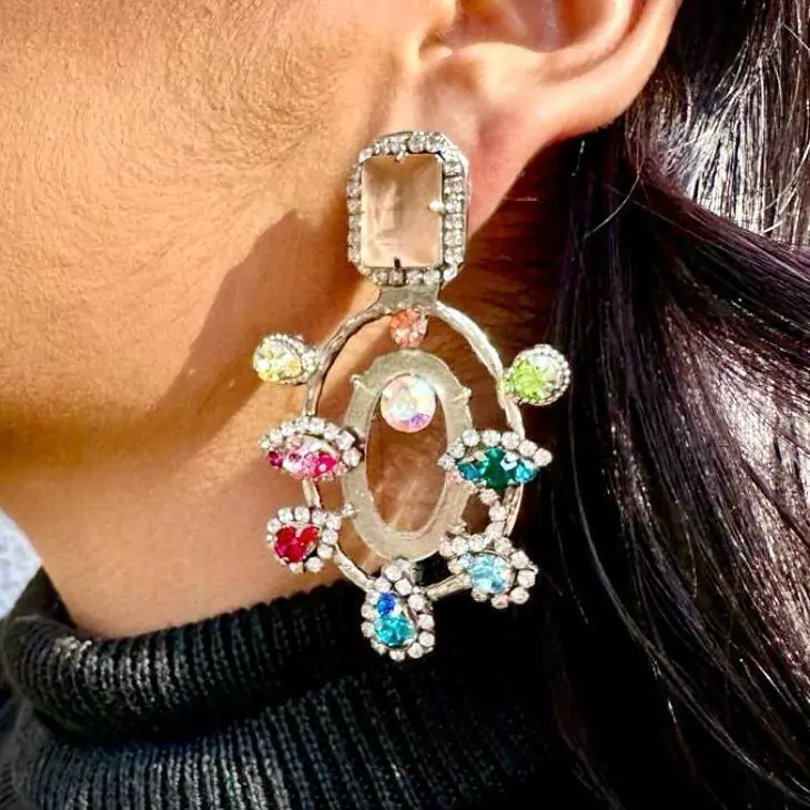 Toque de Cor e Alegria: Este encantador brinco apresenta uma combinação vibrante de pedras coloridas, trazendo um toque de alegria e vivacidade ao seu visual.